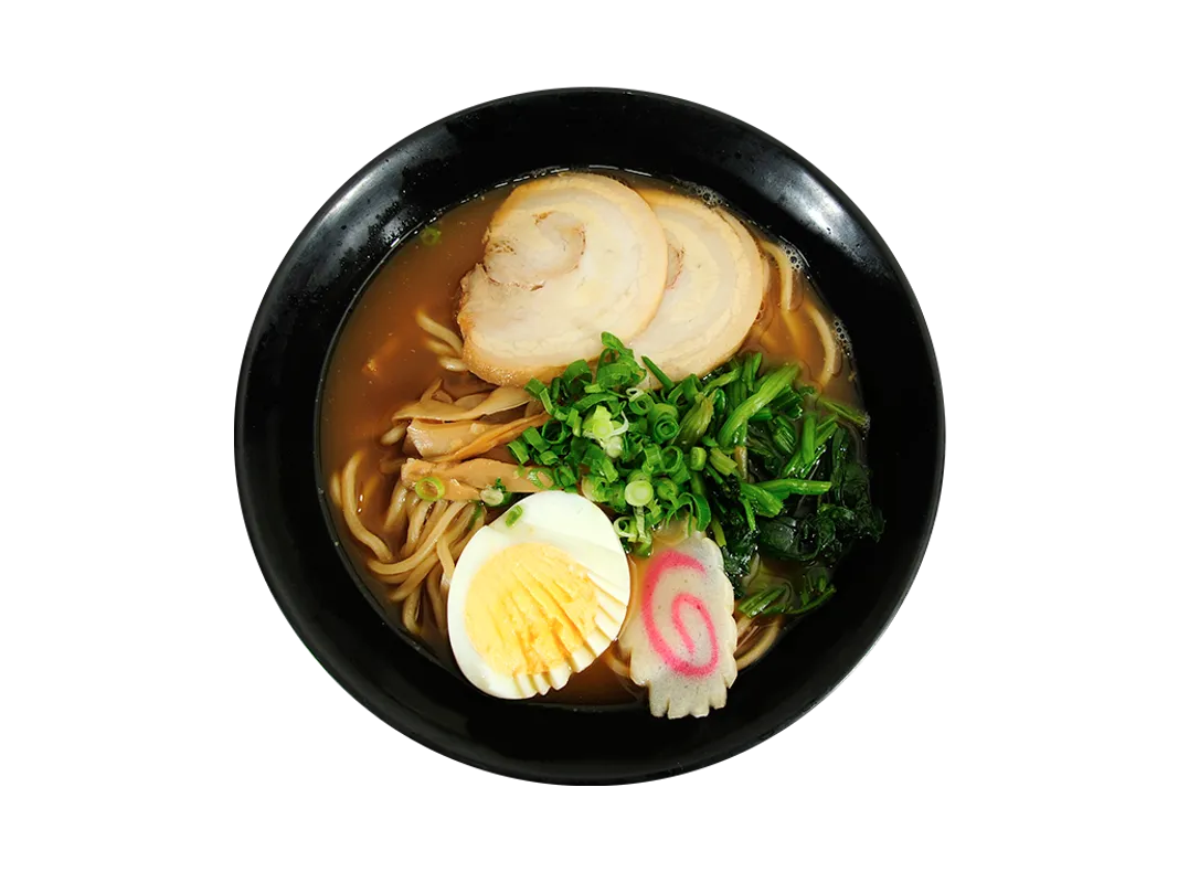 Delicioso fondo de mariscos, fideos, salmón, atún, langostinos, coronada de cebollín y huevo.